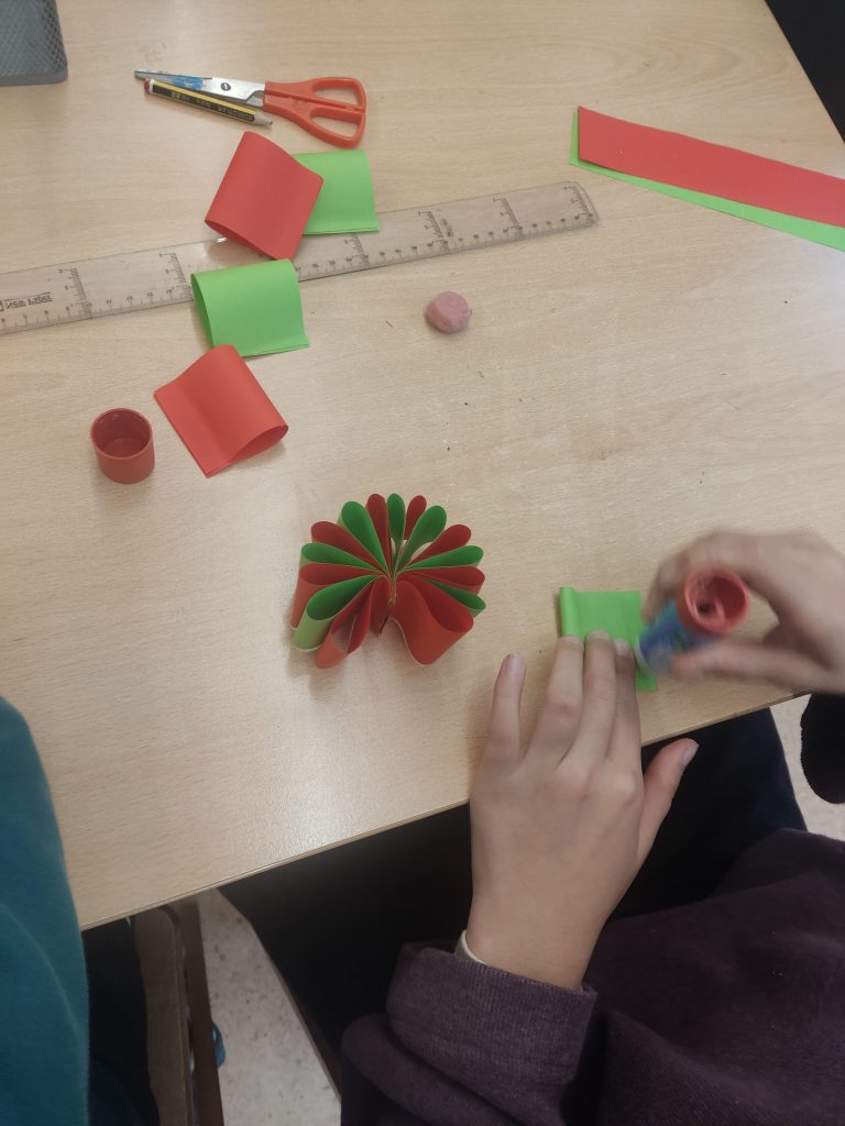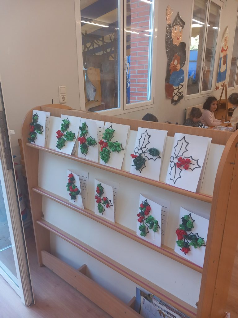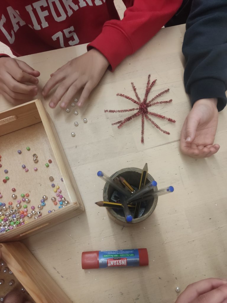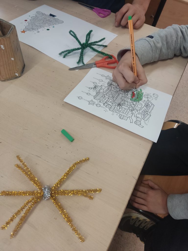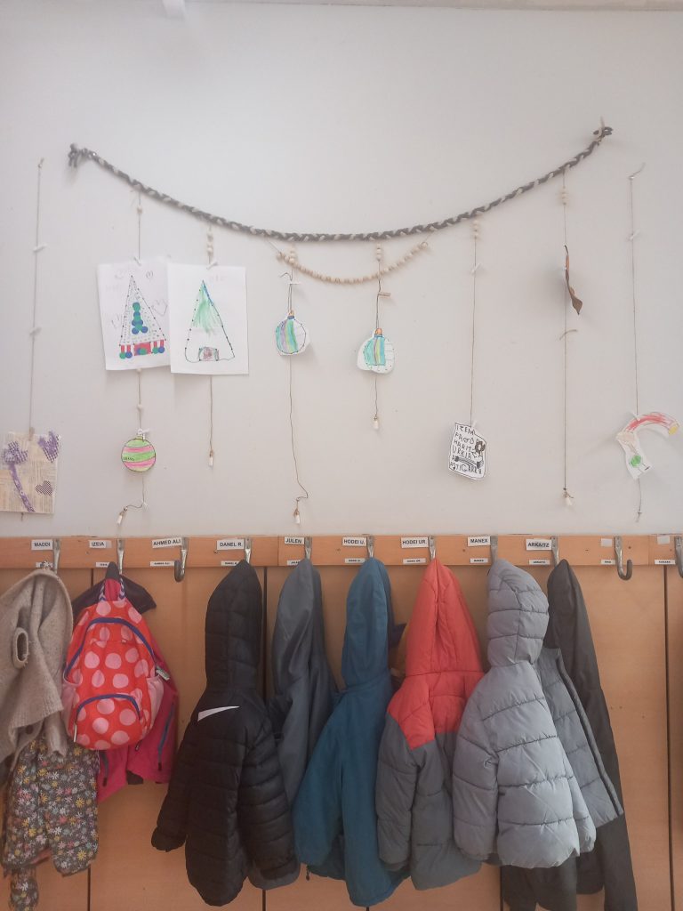 Lehen Hezkuntzan ere, Gabonetako prestaketak lanez eta sormenaz bete dira. Ikasleek Olentzero eta Mari Domingiri ongietorri beroena egiteko apaingarri bereziak diseinatu dituzte, eskolako txoko guztiak kolorez eta festaz jantziz.