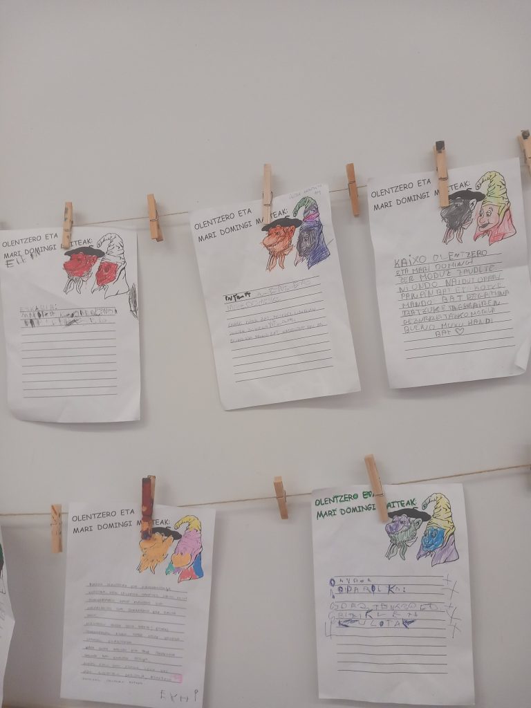 Azken asteetan, haurrek beren portaerarik onena erakutsi dute: elkarrekin jolas egin dute, esperientziak partekatu eta egunerokoan elkarri lagundu diote, gure komunitatea bereizten duten baloreak sendotuz. Ekintza berezien artean, Olentzero eta Mari Domingiri idatzitako gutunak nabarmendu dira. Haurrak emozioz eta ilusioz bete dira beren amets eta desioak paperera ekartzean, eta gutunak postontzian sartzeko momentuak benetako magia sortu du.